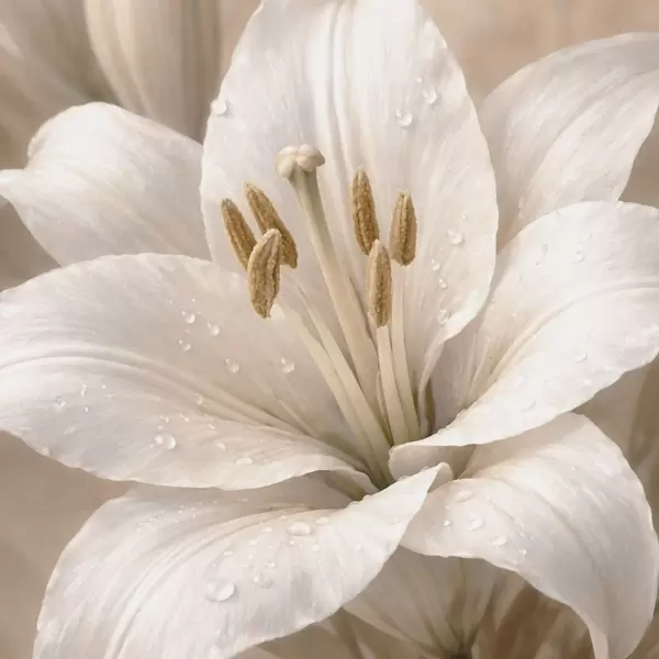 Poster Primo piano di un fiore bianco con goccioline d'acqua Nr f48028