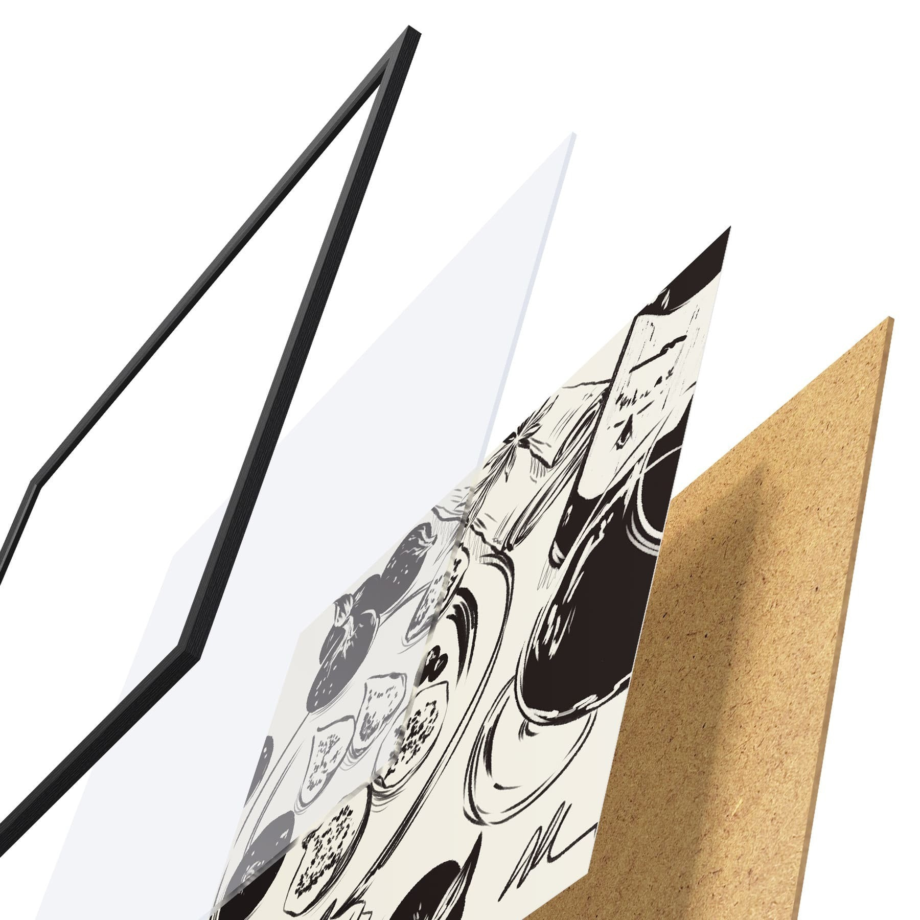Il poster è composto da cornice, plexiglass, immagine stampata e supporto in truciolato. Il poster può essere immediatamente appeso alla parete grazie ai supporti sul retro.