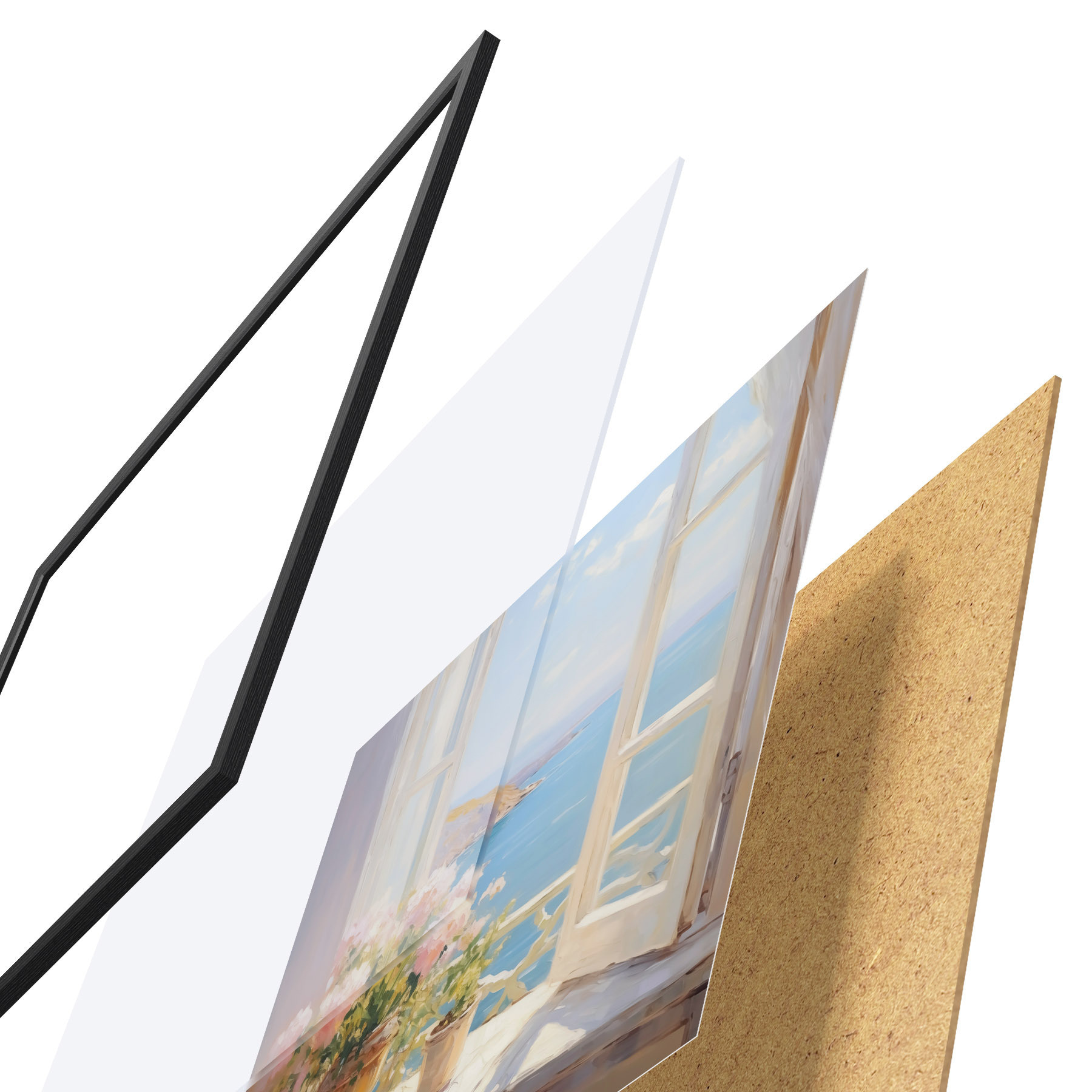 Il poster è composto da cornice, plexiglass, immagine stampata e supporto in truciolato. Il poster può essere immediatamente appeso alla parete grazie ai supporti sul retro.