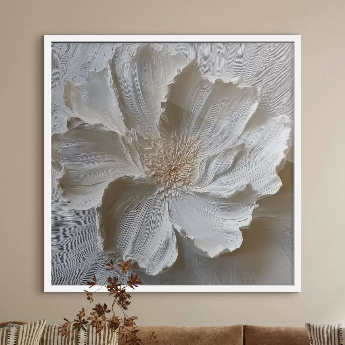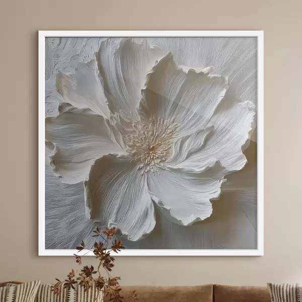 Poster scultura floreale in gesso bianco a rilievo f48064