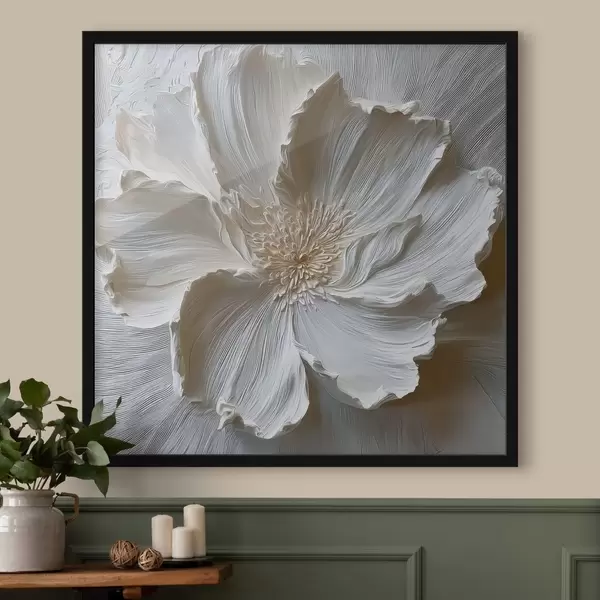 Poster scultura floreale in gesso bianco a rilievo Nr f48064