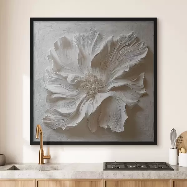 Poster scultura floreale in gesso bianco a rilievo f48065