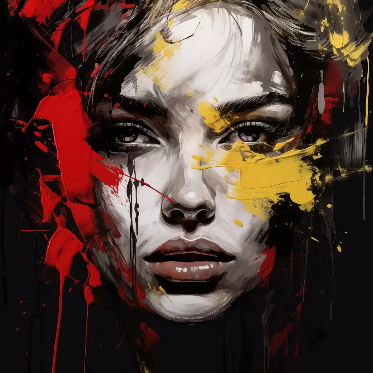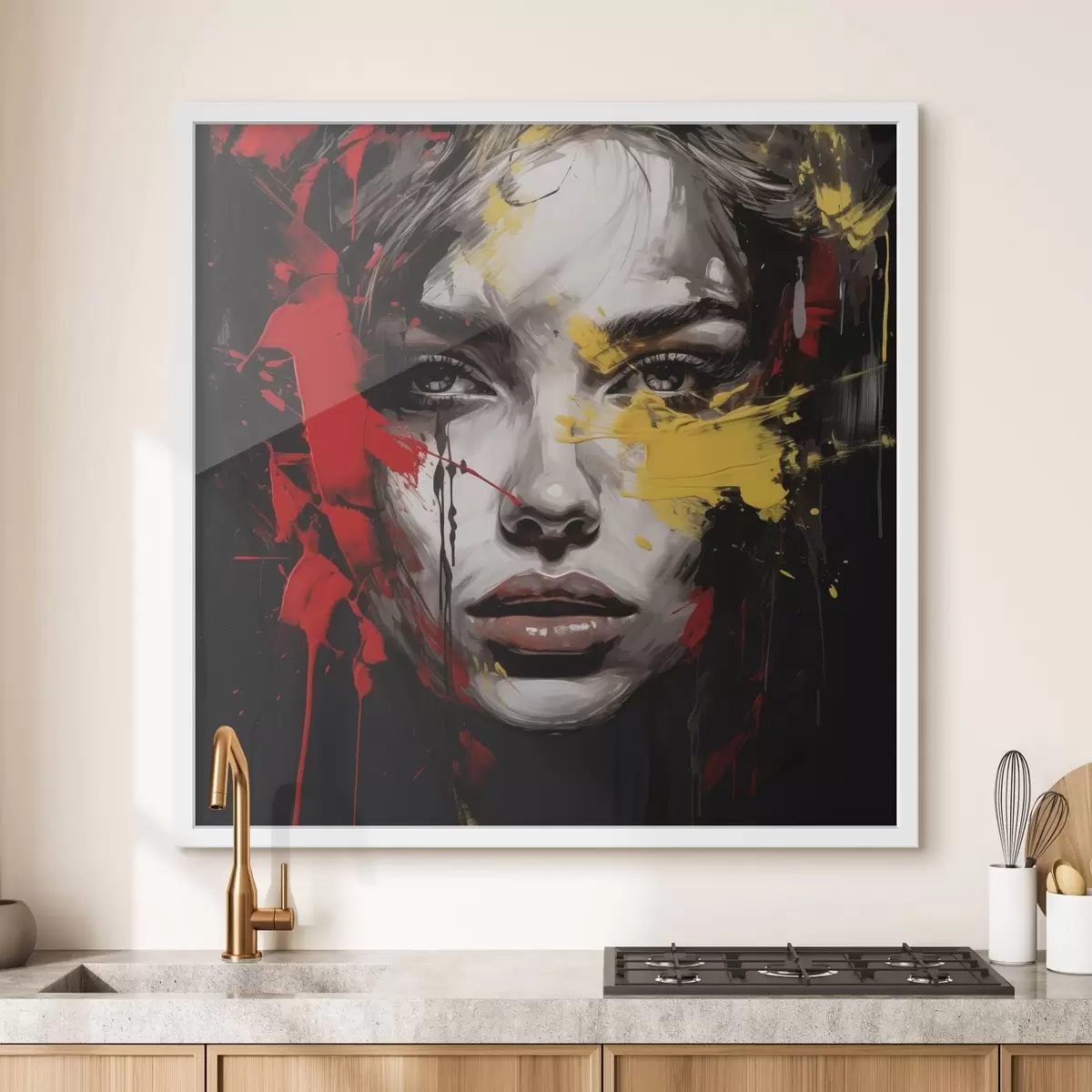 Poster Ritratto di donna con pennellate rosse e gialle Nr f48089