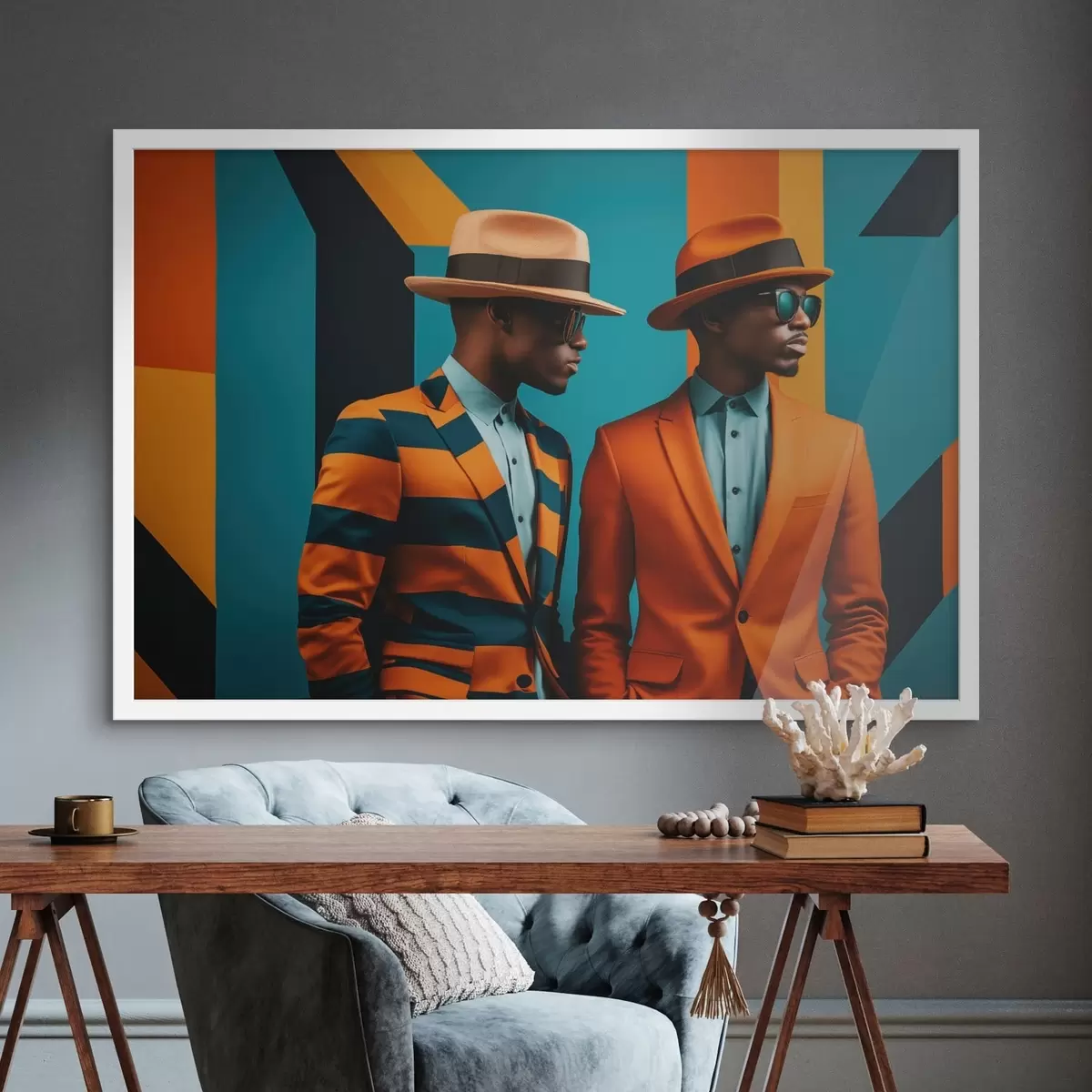 Poster Due uomini in abiti eleganti e cappelli f48091