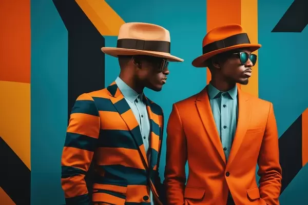 Poster Due uomini in abiti eleganti e cappelli f48091