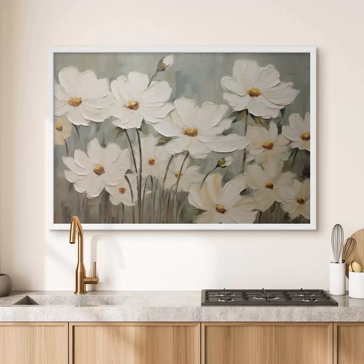 Poster Fiori bianchi su sfondo strutturato, pennellate Nr f48094