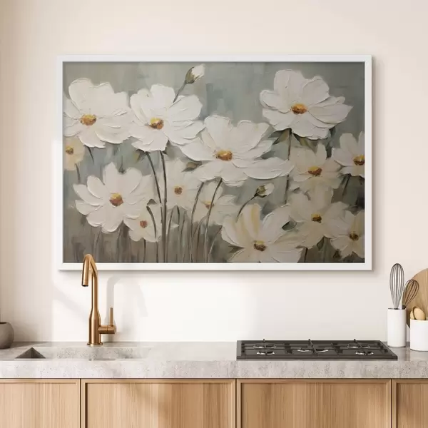 Poster Fiori bianchi su sfondo strutturato, pennellate f48094