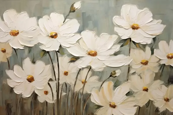 Poster Fiori bianchi su sfondo strutturato, pennellate Nr f48094