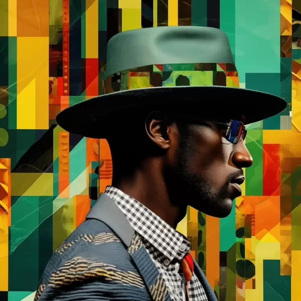 Poster Ritratto di uomo con cappello su sfondo vivace f48100
