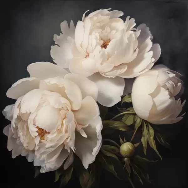 Poster Peonie bianche su sfondo scuro Nr f48101