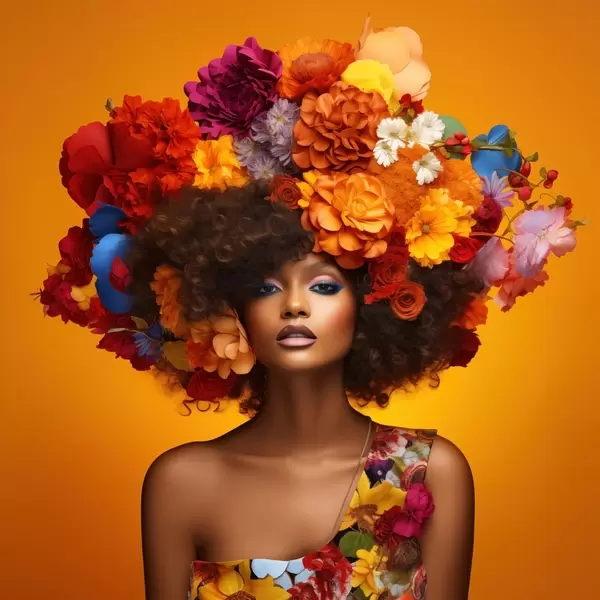 Poster Donna con copricapo floreale su sfondo arancione Nr f48102