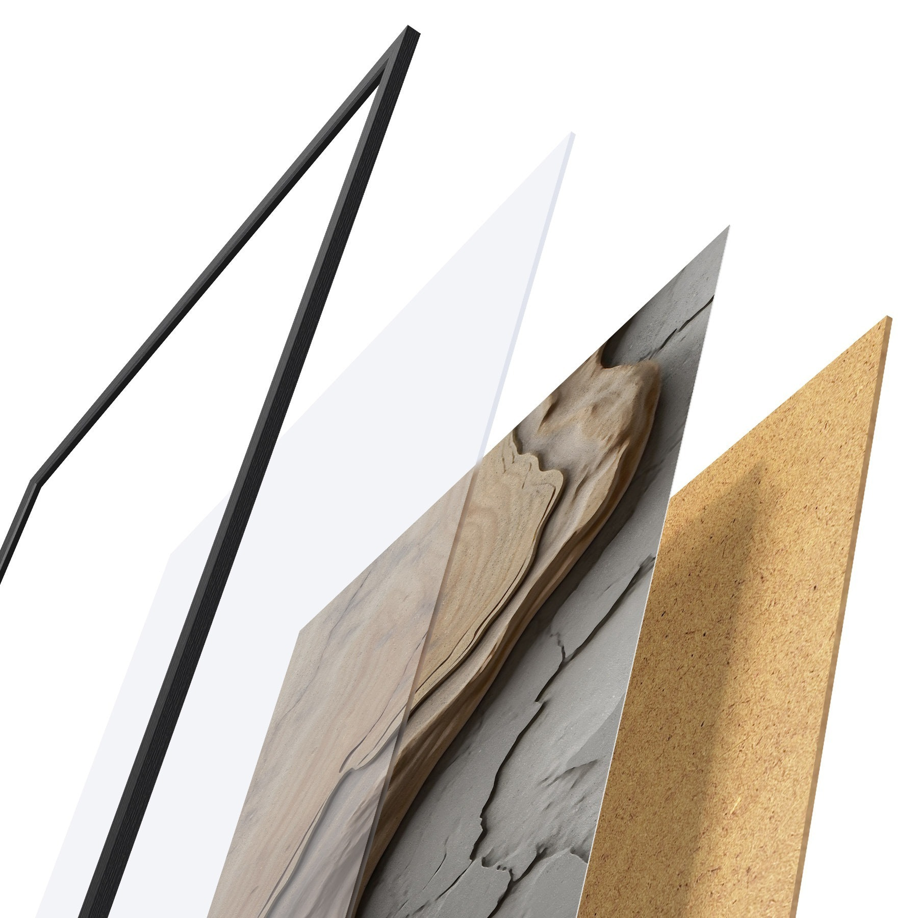 Il poster è composto da cornice, plexiglass, immagine stampata e supporto in truciolato. Il poster può essere immediatamente appeso alla parete grazie ai supporti sul retro.