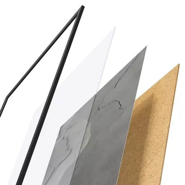 Il poster è composto da cornice, plexiglass, immagine stampata e supporto in truciolato. Il poster può essere immediatamente appeso alla parete grazie ai supporti sul retro.