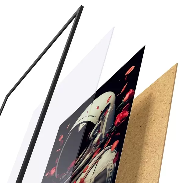 Il poster è composto da cornice, plexiglass, immagine stampata e supporto in truciolato. Il poster può essere immediatamente appeso alla parete grazie ai supporti sul retro.