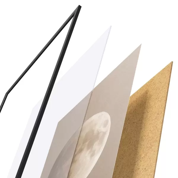 Il poster è composto da cornice, plexiglass, immagine stampata e supporto in truciolato. Il poster può essere immediatamente appeso alla parete grazie ai supporti sul retro.