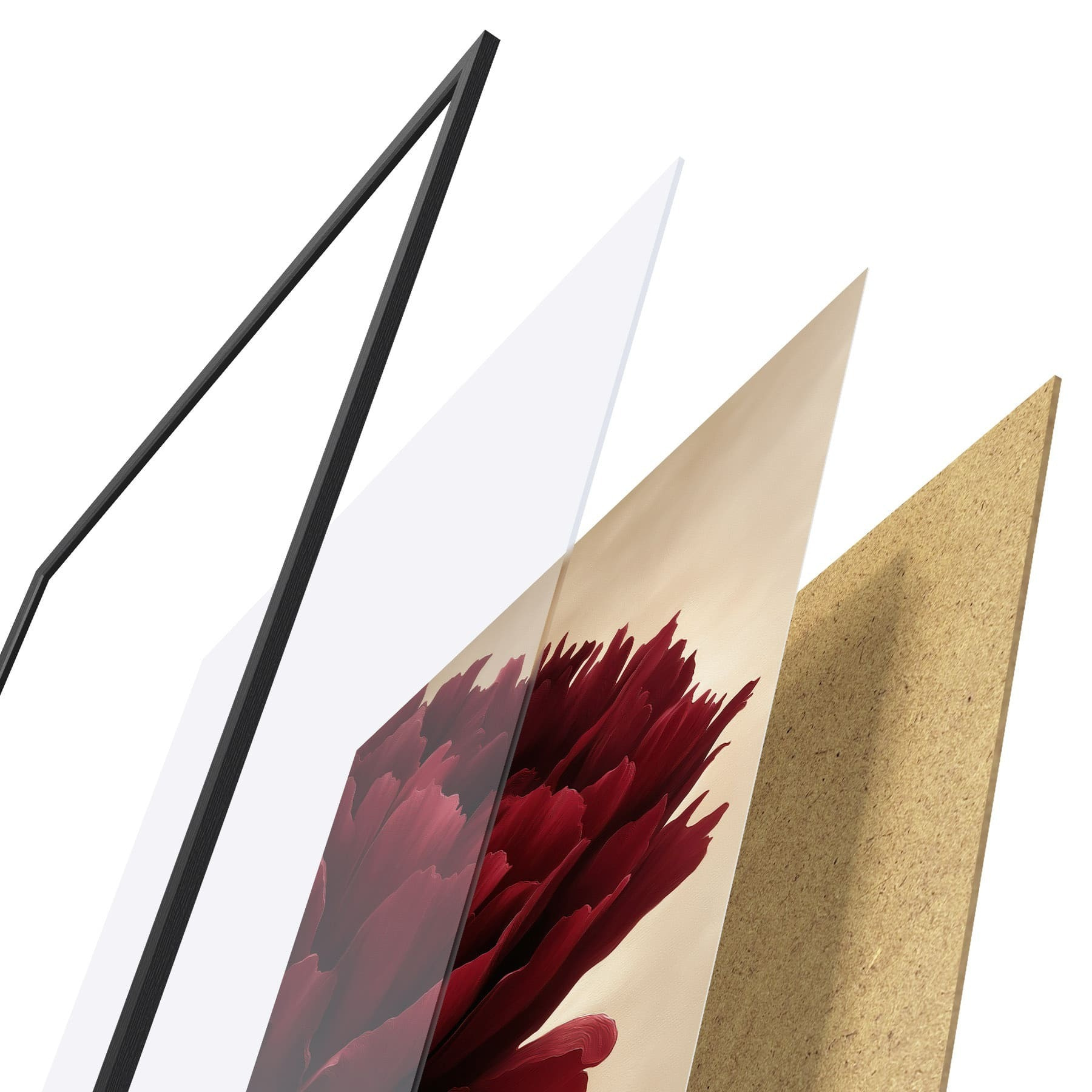 Il poster è composto da cornice, plexiglass, immagine stampata e supporto in truciolato. Il poster può essere immediatamente appeso alla parete grazie ai supporti sul retro.