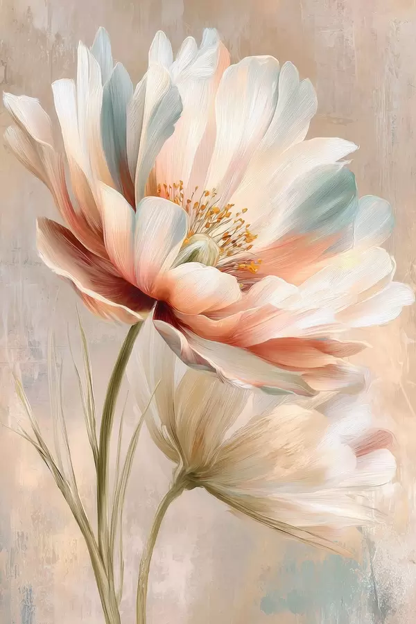 Poster Delicate peonie in una palette di colori beige e corallo, in stile pittura a olio Nr f48184
