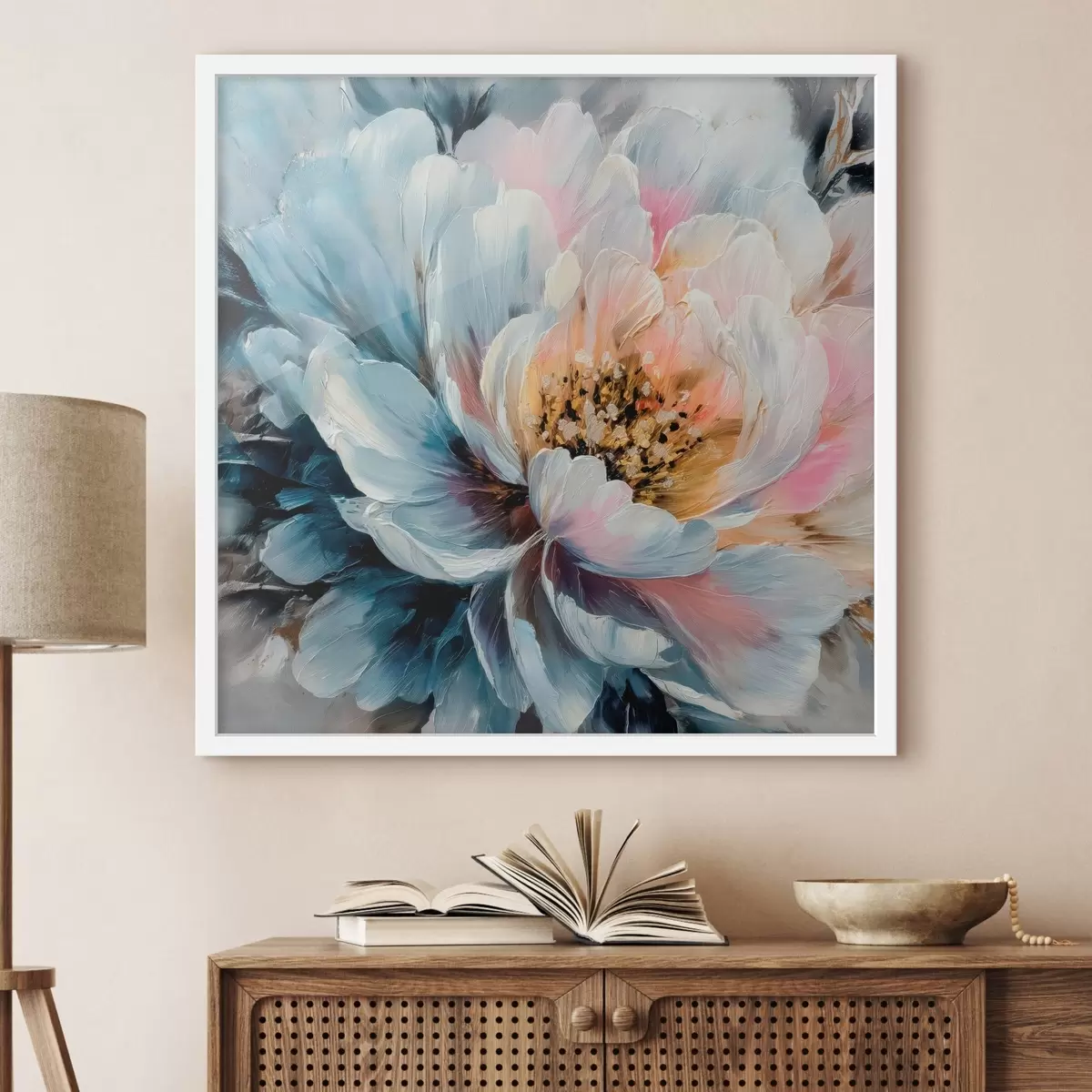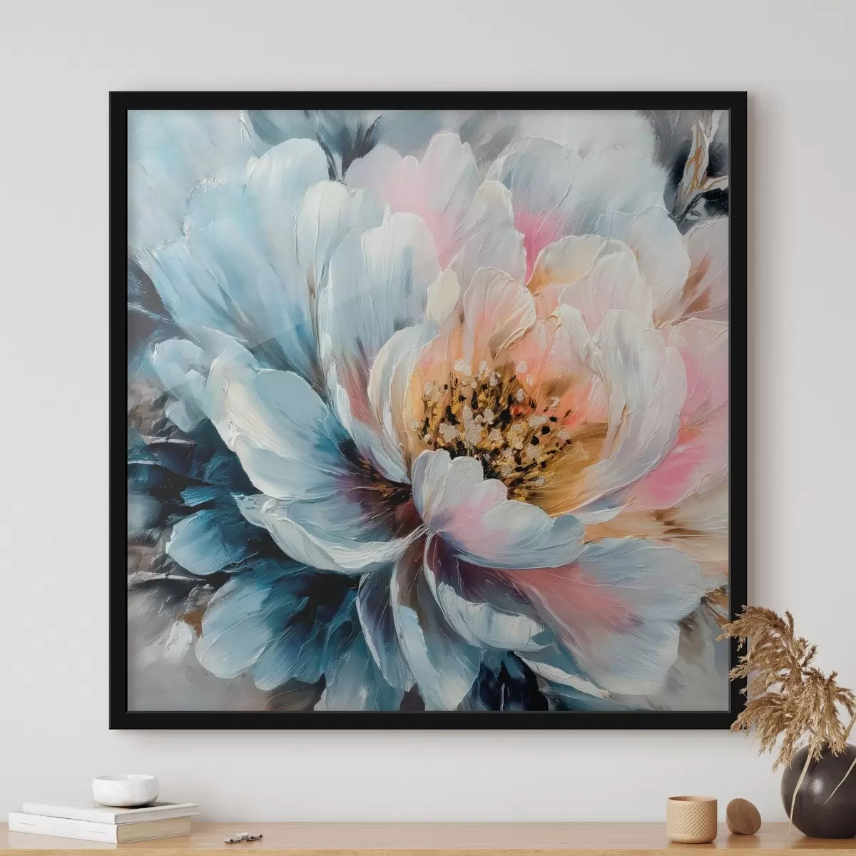 Poster Grande peonia raffigurata con pennellate espressive e ricche di texture in stile pittorico contemporaneo Nr f48197