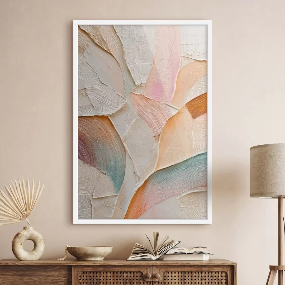 Poster Sfondo astratto con pennellate dinamiche nei toni del pesca e del blu Nr f48202