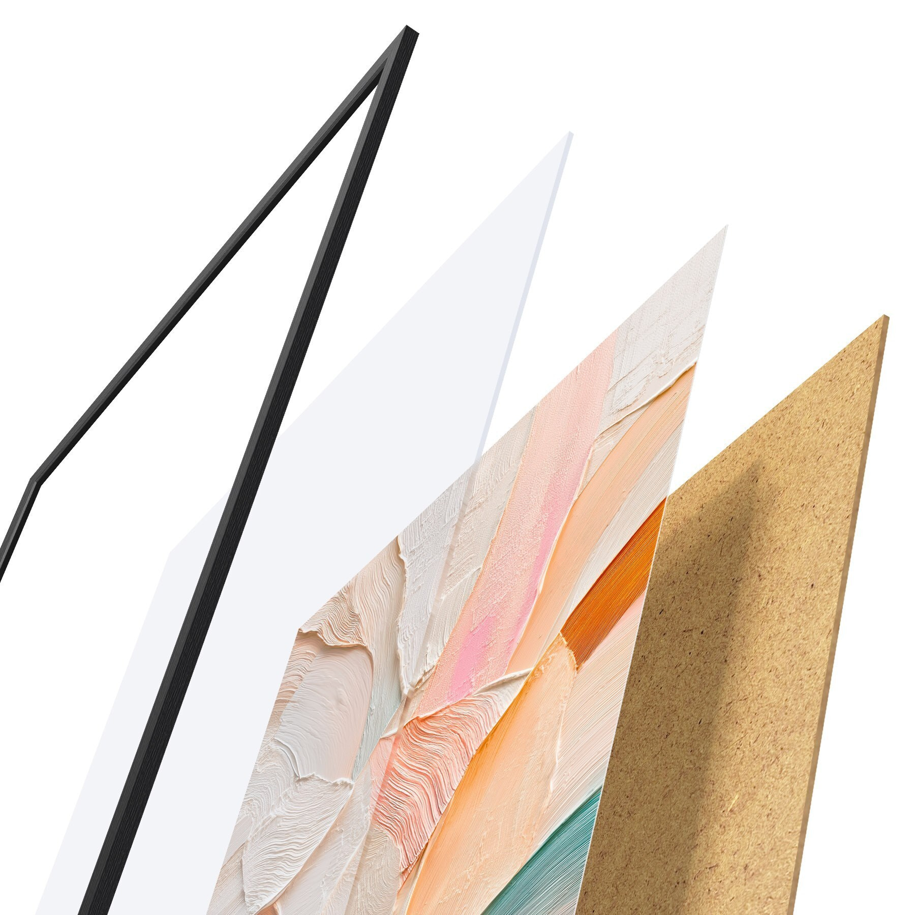 Il poster è composto da cornice, plexiglass, immagine stampata e supporto in truciolato. Il poster può essere immediatamente appeso alla parete grazie ai supporti sul retro.