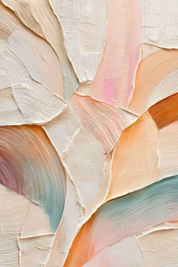 Poster Sfondo astratto con pennellate dinamiche nei toni del pesca e del blu Nr f48202