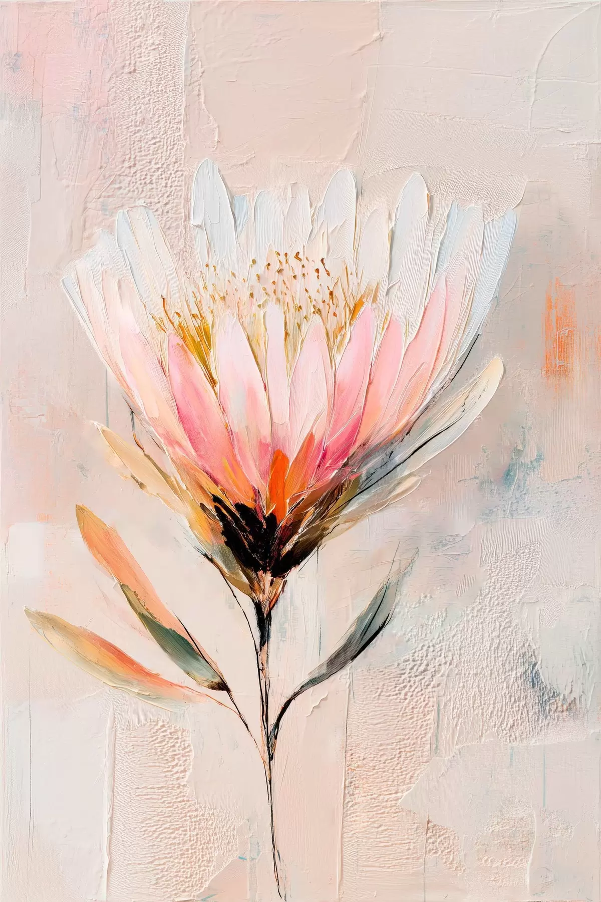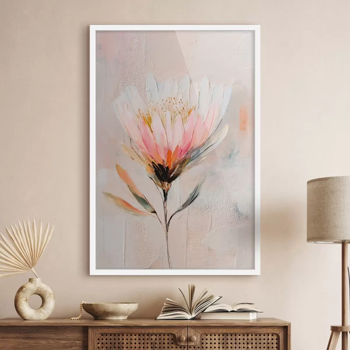Poster Fiore di protea dai delicati toni rosa in stile pittura a olio f48205