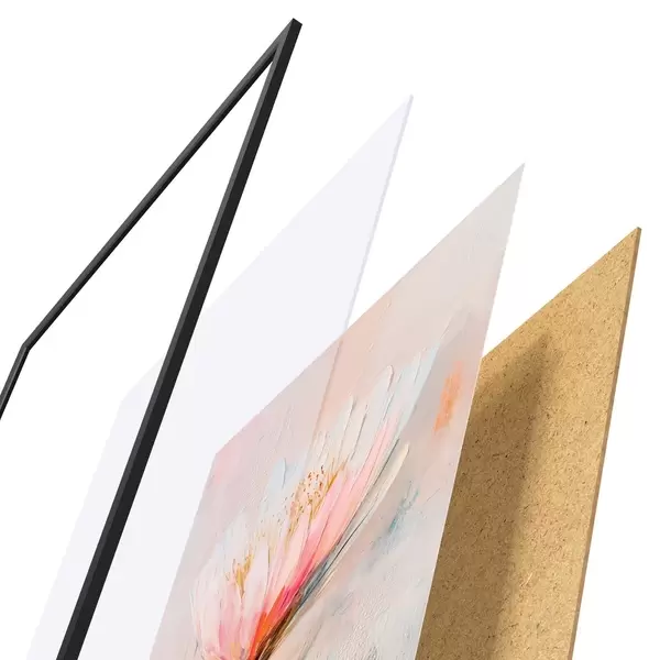 Il poster è composto da cornice, plexiglass, immagine stampata e supporto in truciolato. Il poster può essere immediatamente appeso alla parete grazie ai supporti sul retro.