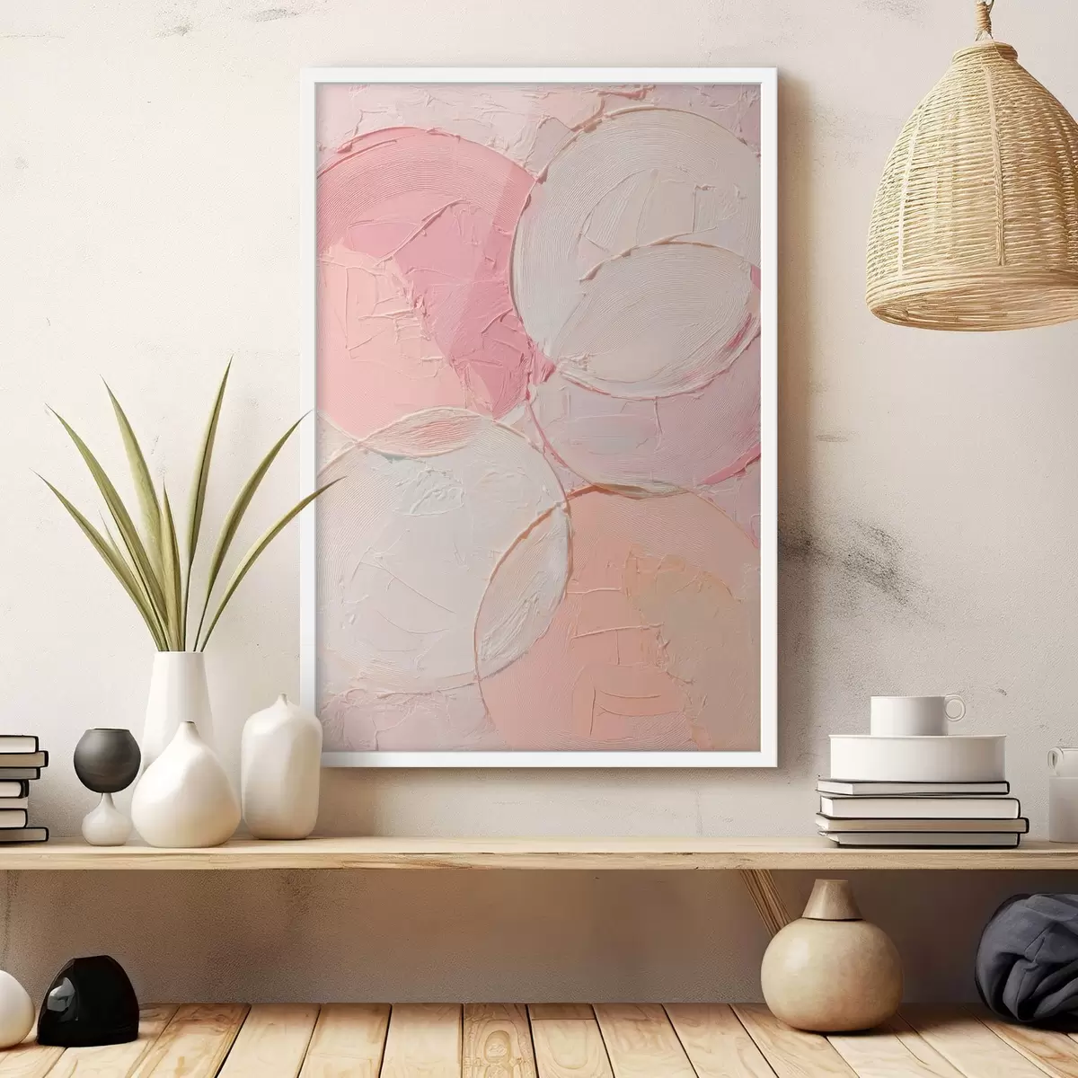 Poster Composizione astratta con cerchi in tenui tonalità di rosa, in stile pittura a olio f48207