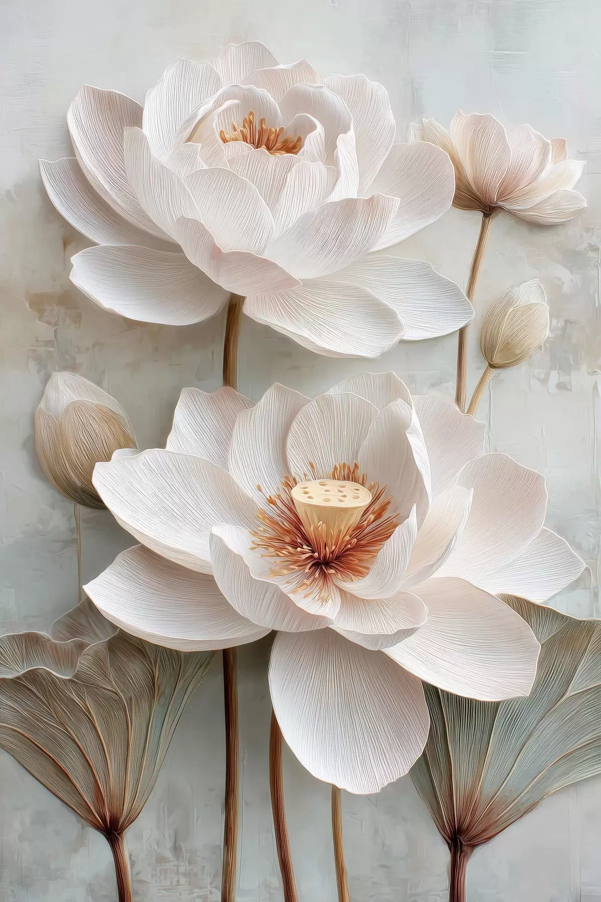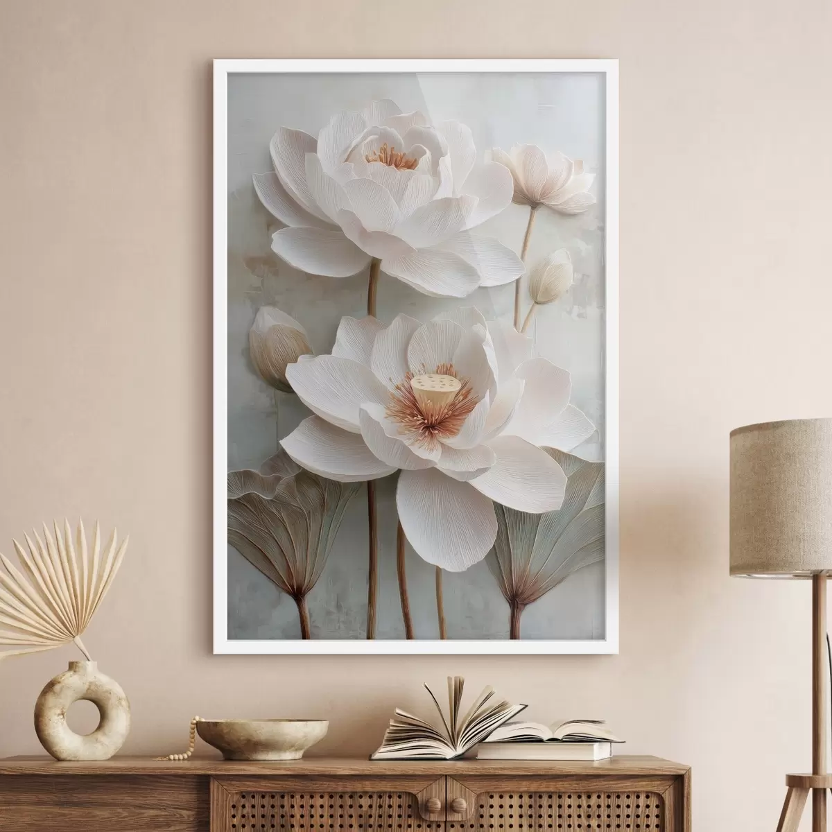 Poster Fiori di loto in tenui tonalità pastello in stile pittura a olio Nr f48213