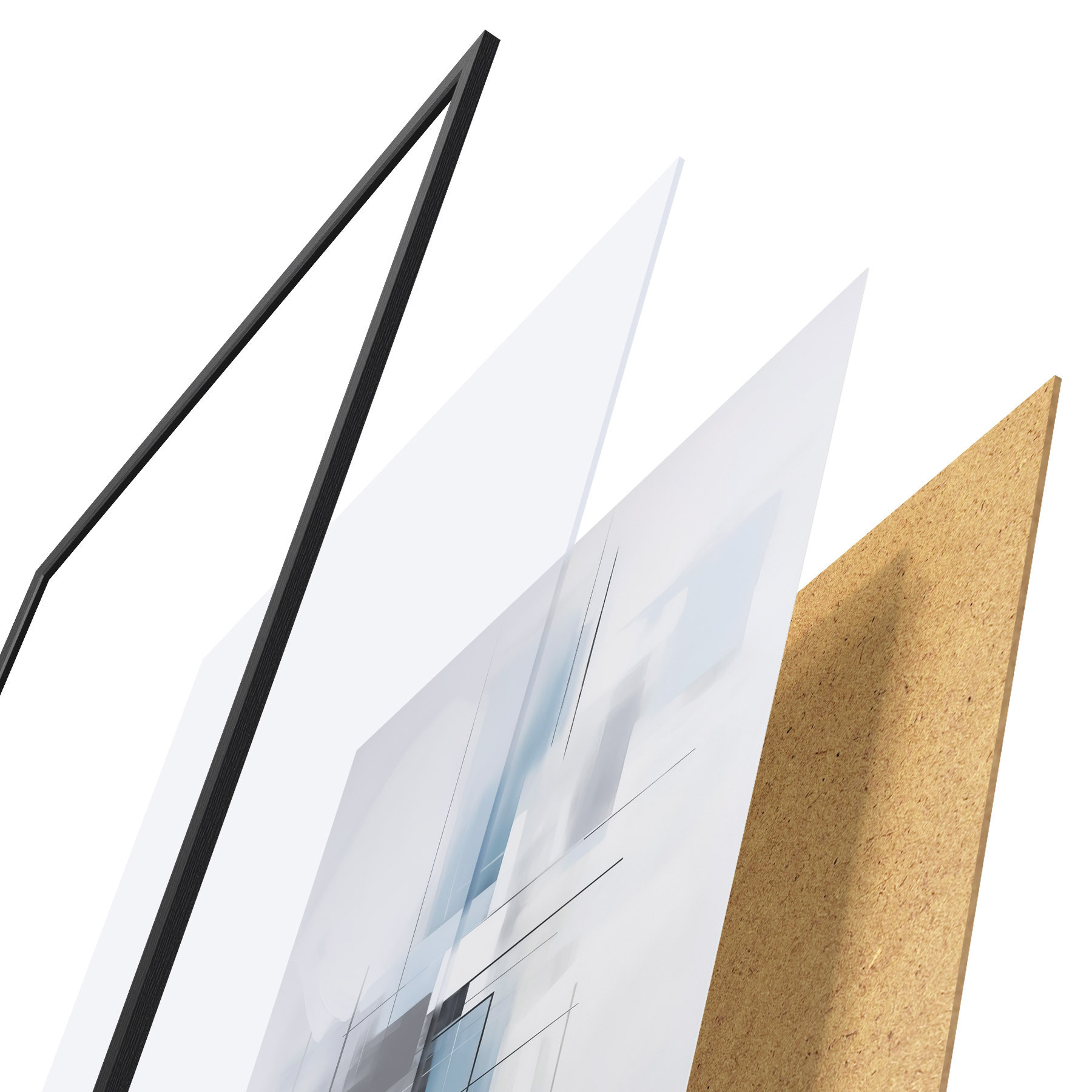 Il poster è composto da cornice, plexiglass, immagine stampata e supporto in truciolato. Il poster può essere immediatamente appeso alla parete grazie ai supporti sul retro.