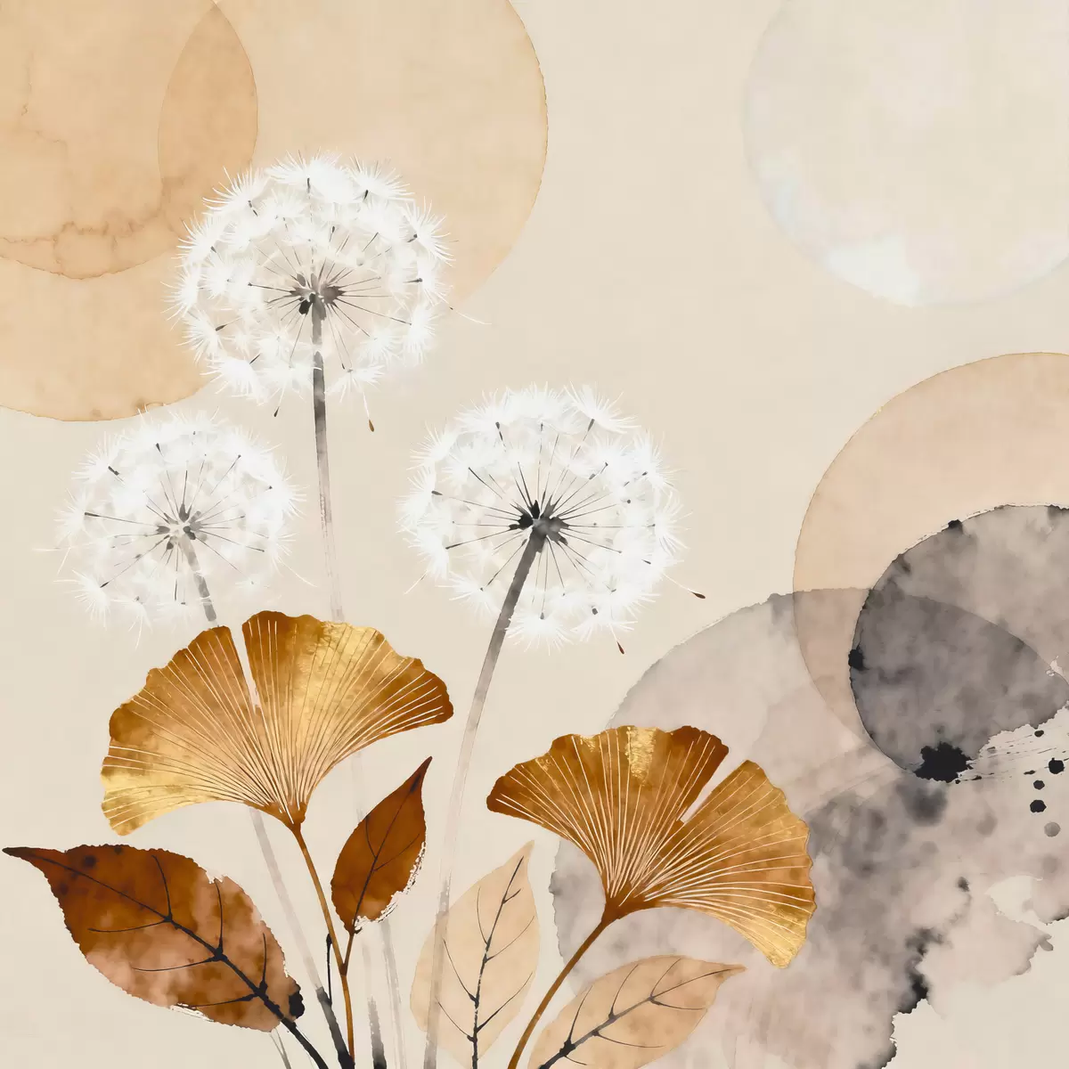 Poster Denti di leone e foglie di ginkgo stilizzati Nr f48279