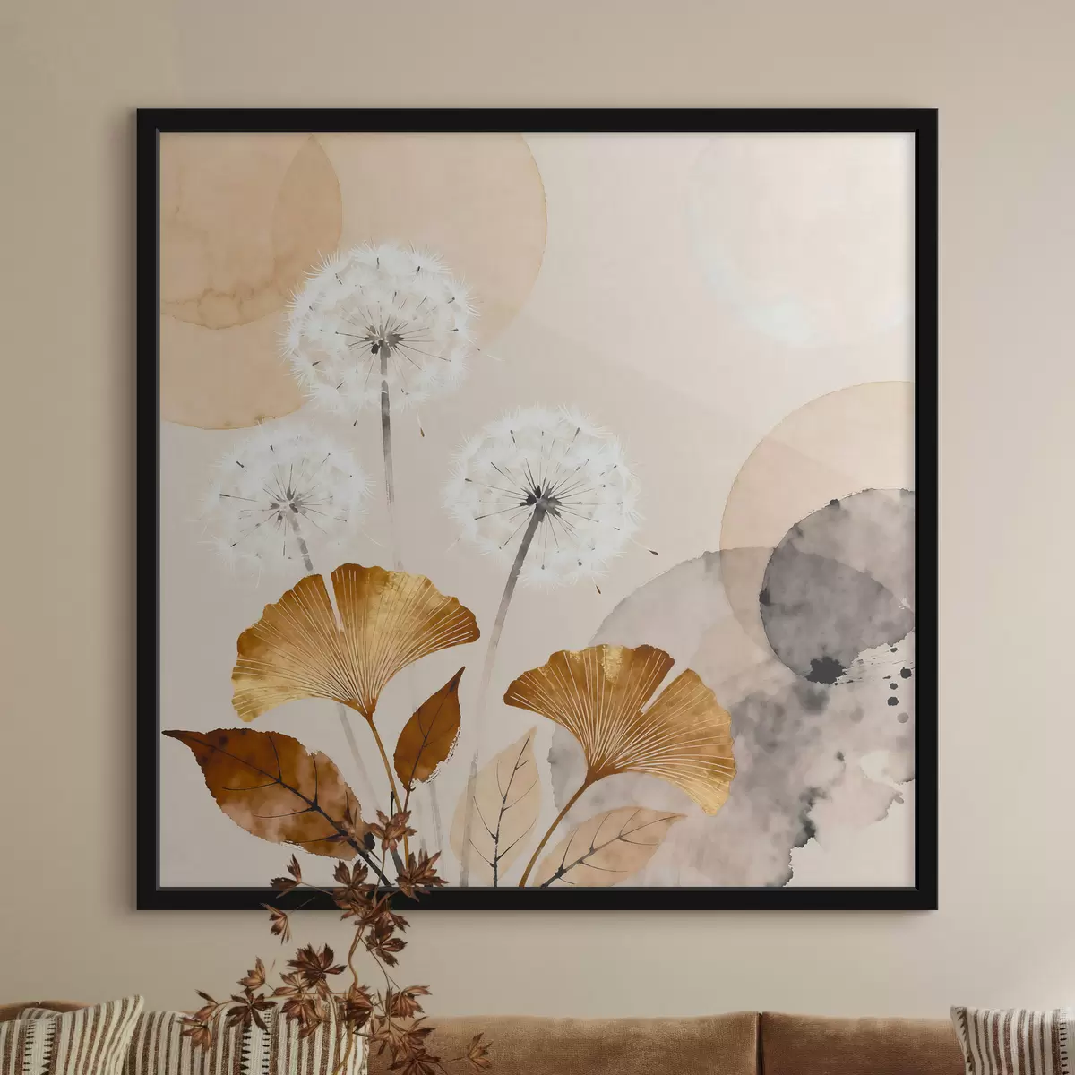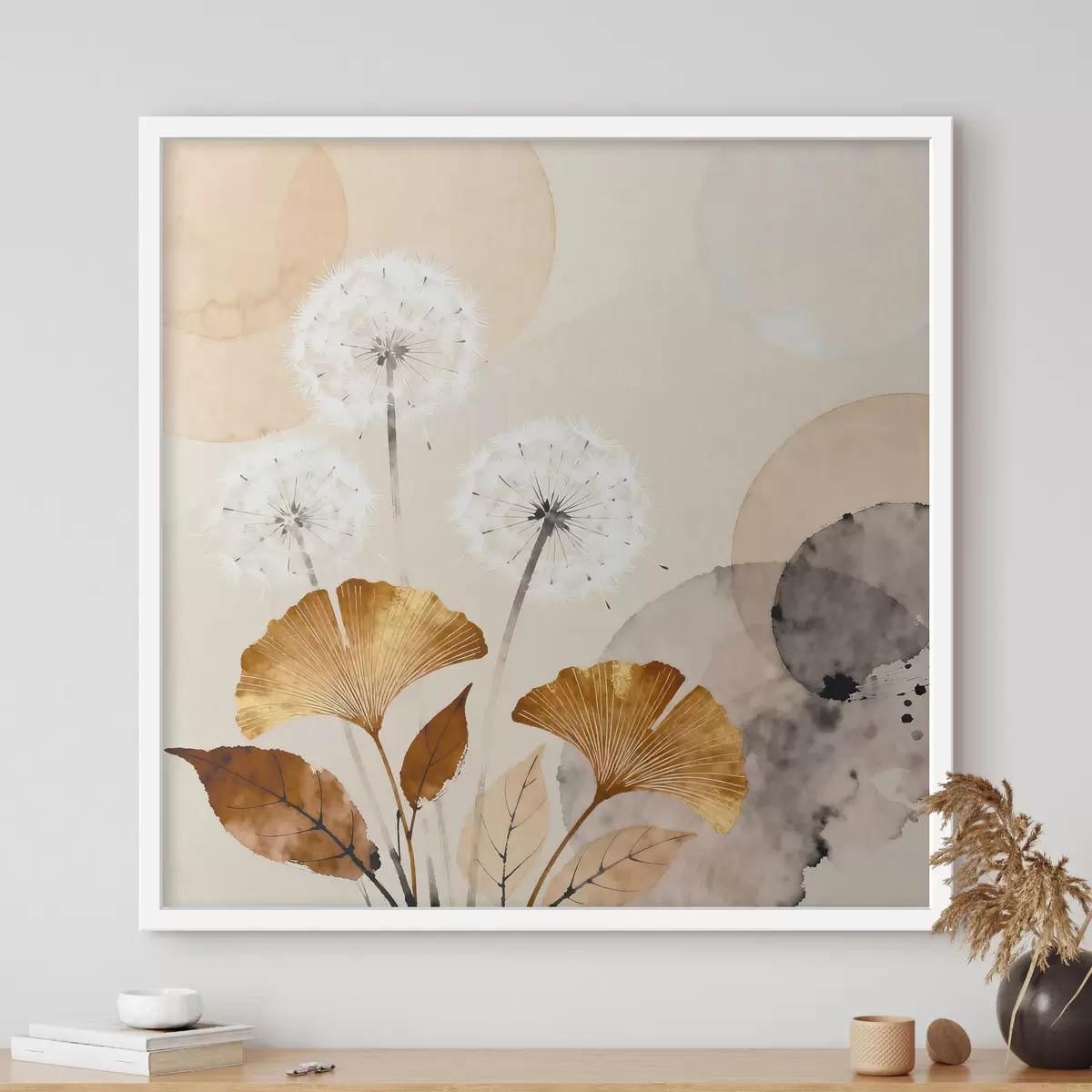 Poster Denti di leone e foglie di ginkgo stilizzati f48279