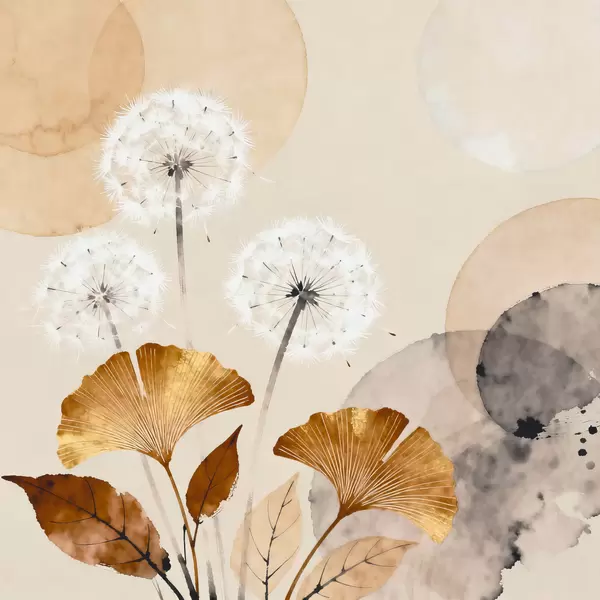 Poster Denti di leone e foglie di ginkgo stilizzati f48279