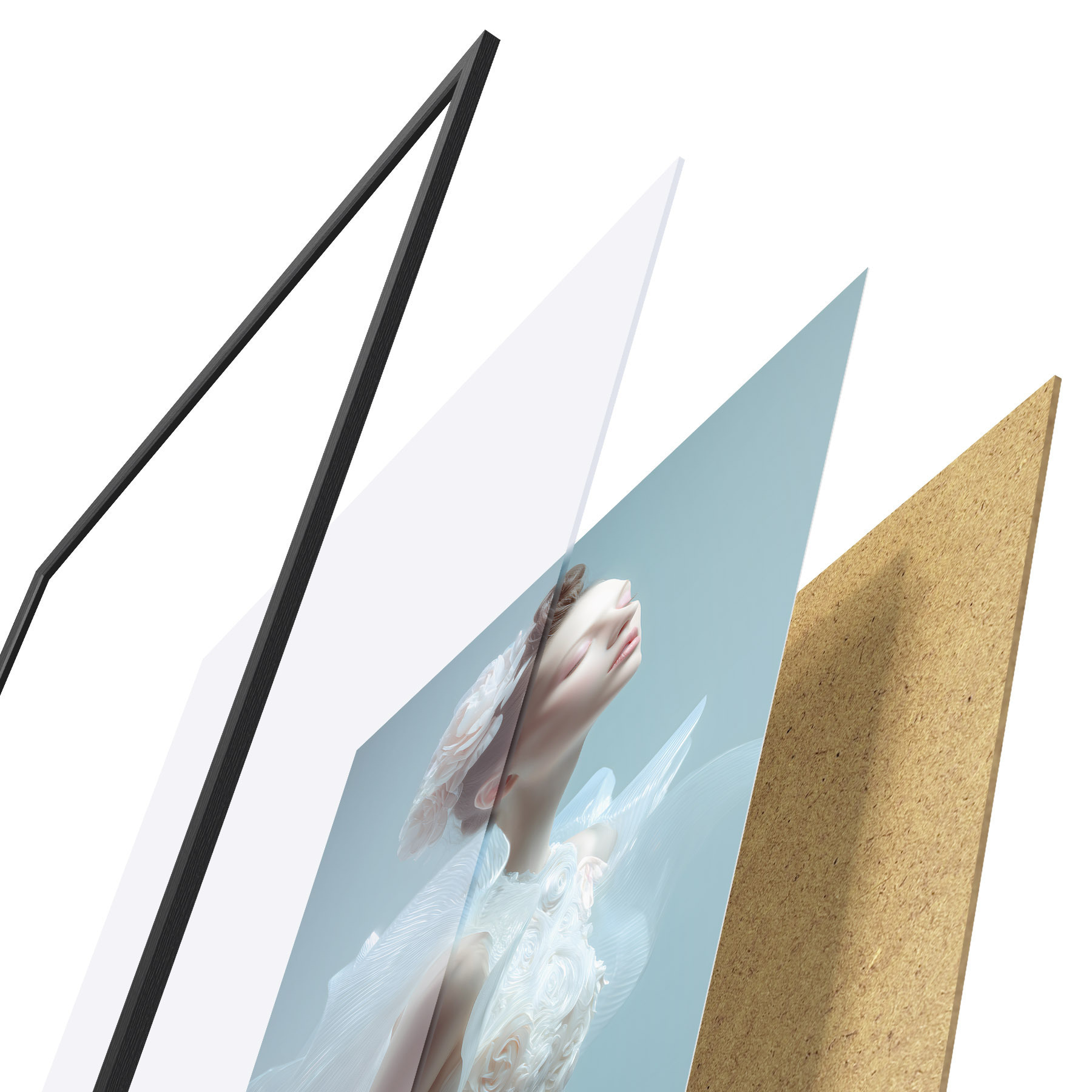 Il poster è composto da cornice, plexiglass, immagine stampata e supporto in truciolato. Il poster può essere immediatamente appeso alla parete grazie ai supporti sul retro.