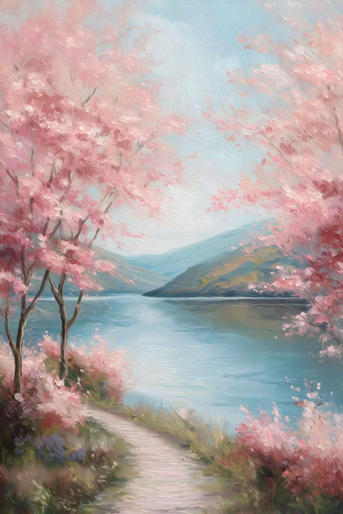 Poster paesaggio con alberi rosa in stile oil Nr f48290