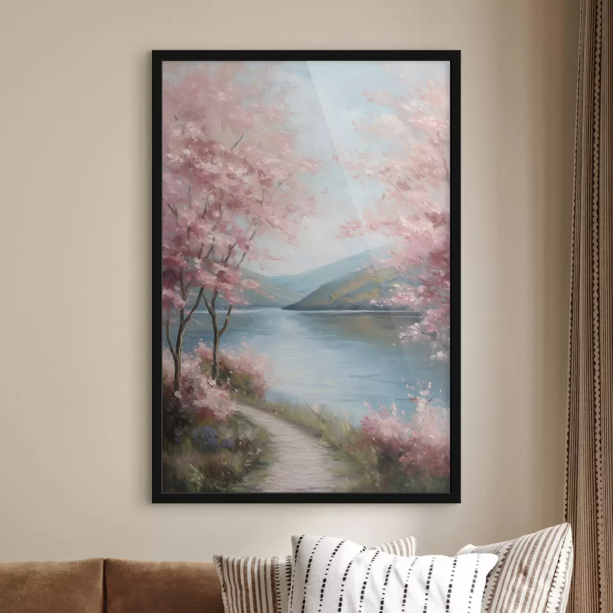 Poster paesaggio con alberi rosa in stile oil f48290