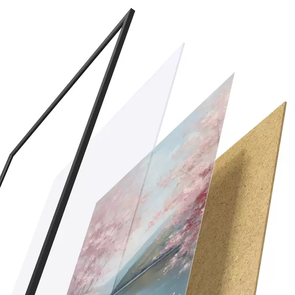 Il poster è composto da cornice, plexiglass, immagine stampata e supporto in truciolato. Il poster può essere immediatamente appeso alla parete grazie ai supporti sul retro.