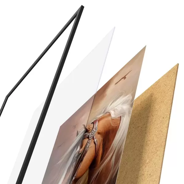 Il poster è composto da cornice, plexiglass, immagine stampata e supporto in truciolato. Il poster può essere immediatamente appeso alla parete grazie ai supporti sul retro.