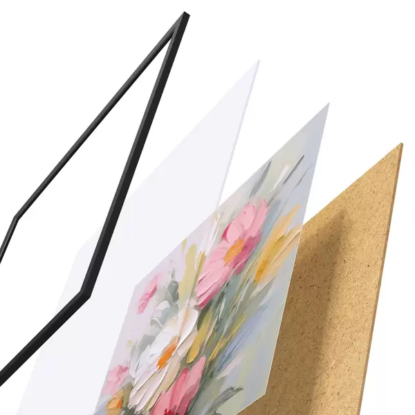 Il poster è composto da cornice, plexiglass, immagine stampata e supporto in truciolato. Il poster può essere immediatamente appeso alla parete grazie ai supporti sul retro.