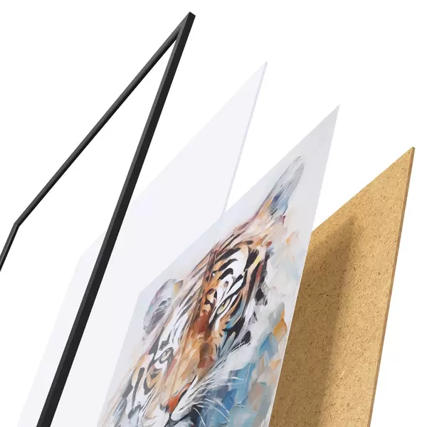 Il poster è composto da cornice, plexiglass, immagine stampata e supporto in truciolato. Il poster può essere immediatamente appeso alla parete grazie ai supporti sul retro.