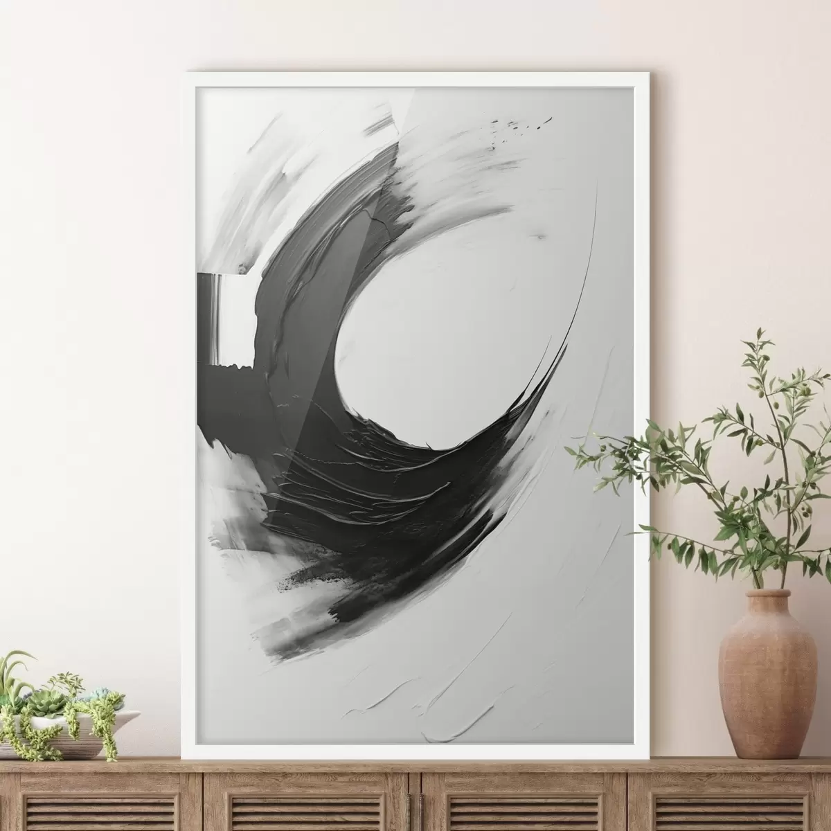 Poster Pennellata astratta nera su sfondo chiaro f48340
