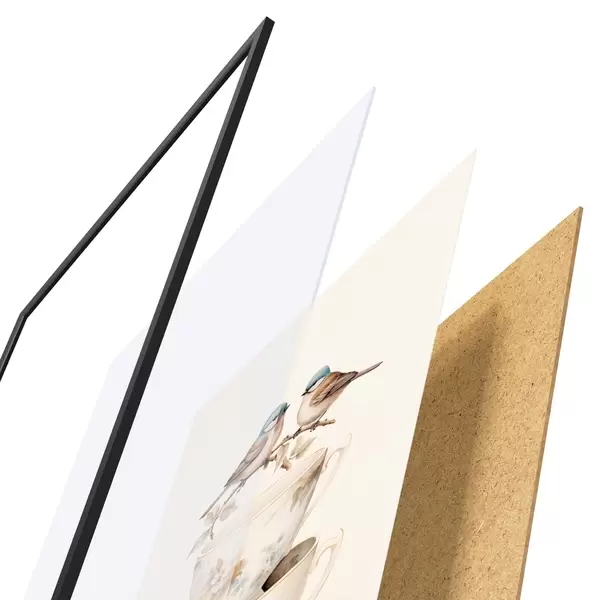 Il poster è composto da cornice, plexiglass, immagine stampata e supporto in truciolato. Il poster può essere immediatamente appeso alla parete grazie ai supporti sul retro.