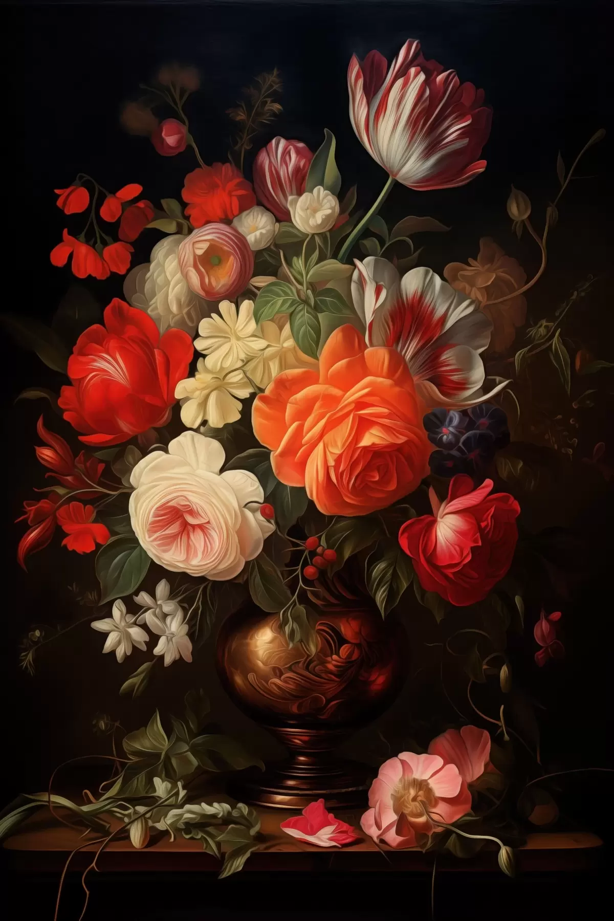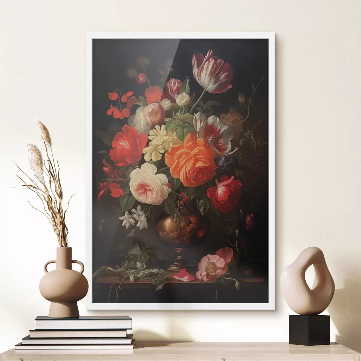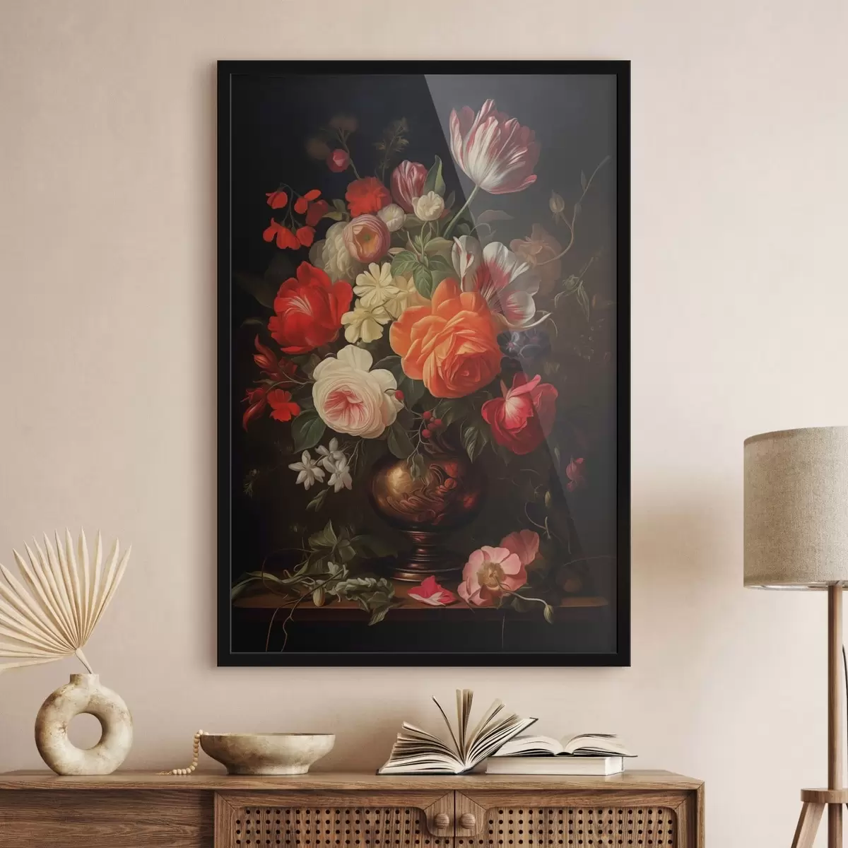 Poster Mazzo di fiori in un vaso su sfondo scuro Nr f48351