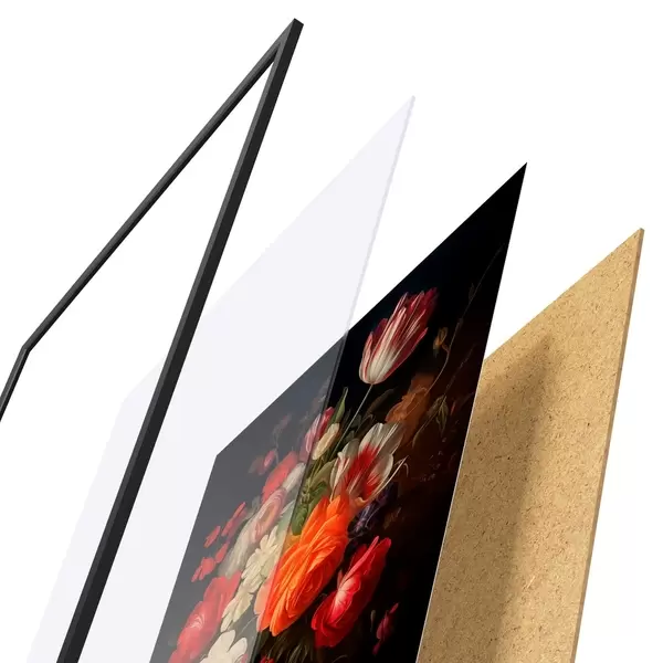 Il poster è composto da cornice, plexiglass, immagine stampata e supporto in truciolato. Il poster può essere immediatamente appeso alla parete grazie ai supporti sul retro.