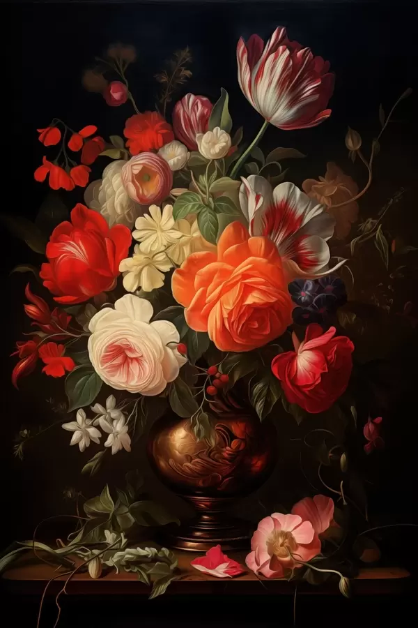 Poster Mazzo di fiori in un vaso su sfondo scuro f48351