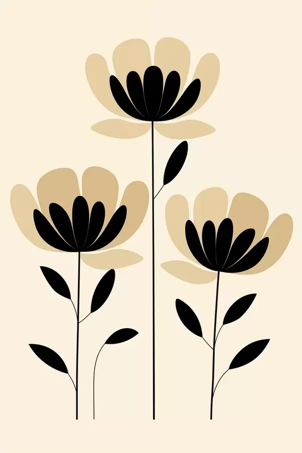 Poster Fiori in stile minimalista nei toni del nero e del beige Nr f48353