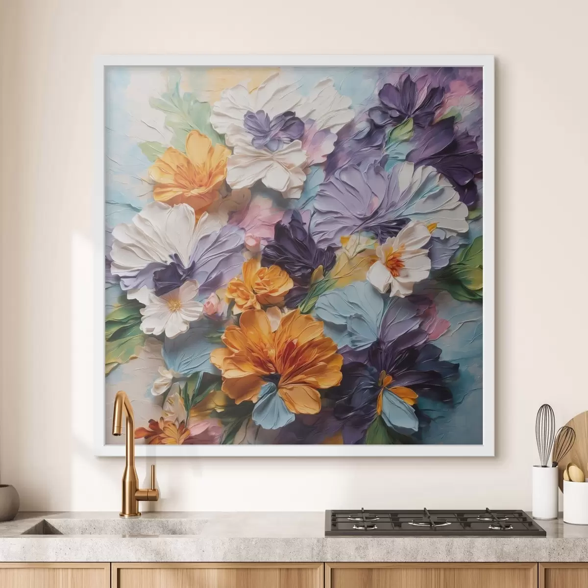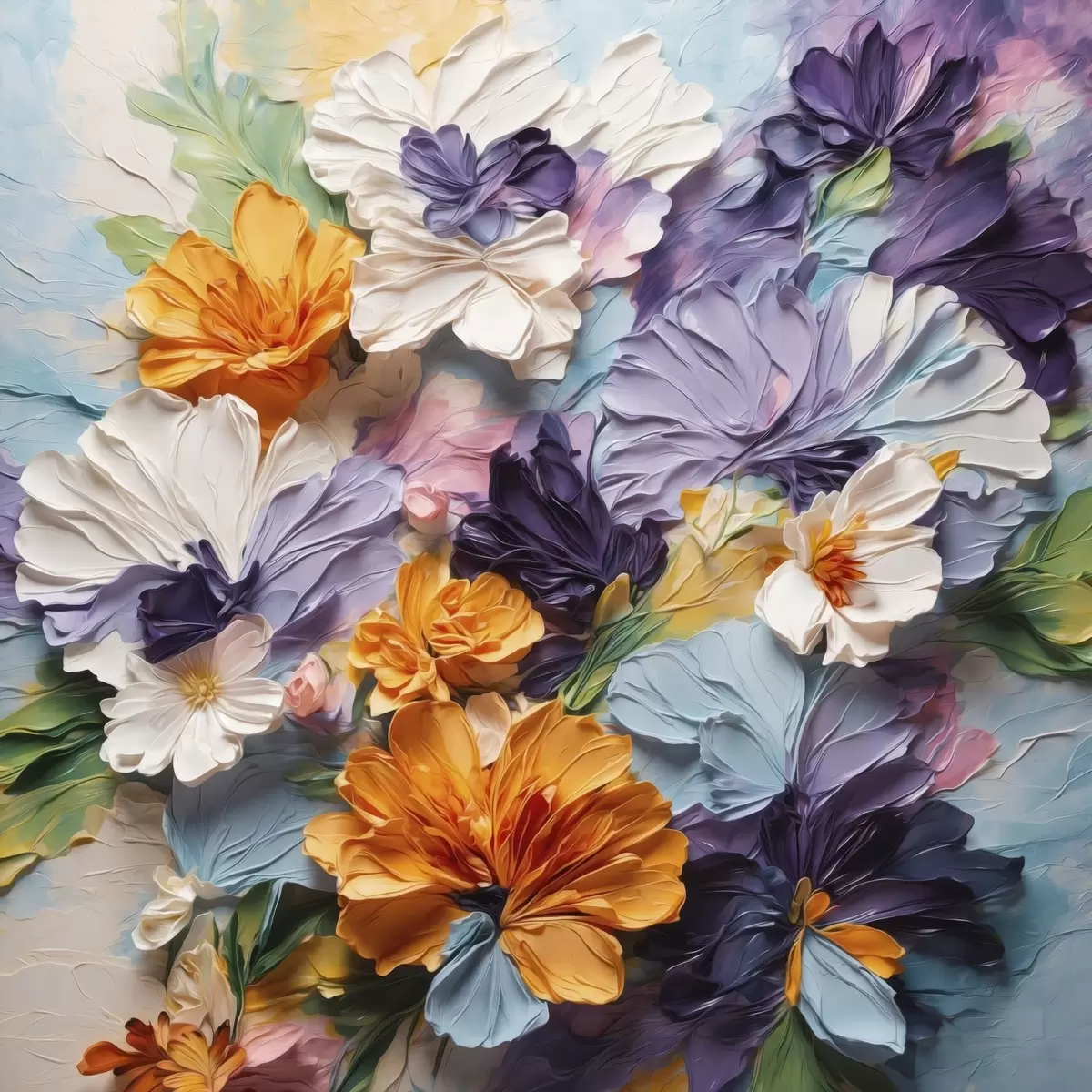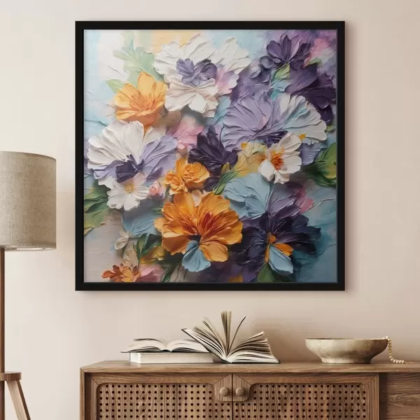 Poster Fiori dai colori vivaci e dalla trama ricca su uno sfondo pastello Nr f48363