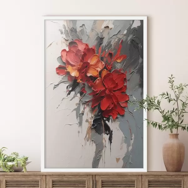 Poster Fiori rossi con tratti materici su sfondo chiaro Nr f48365