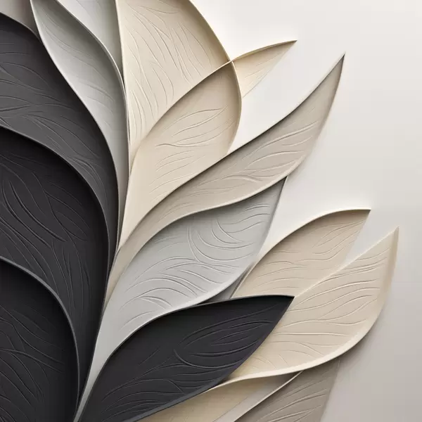 Poster Composizione astratta di foglie sovrapposte, forme sinuose in nero, bianco e beige, opera d'arte materica Nr f48382