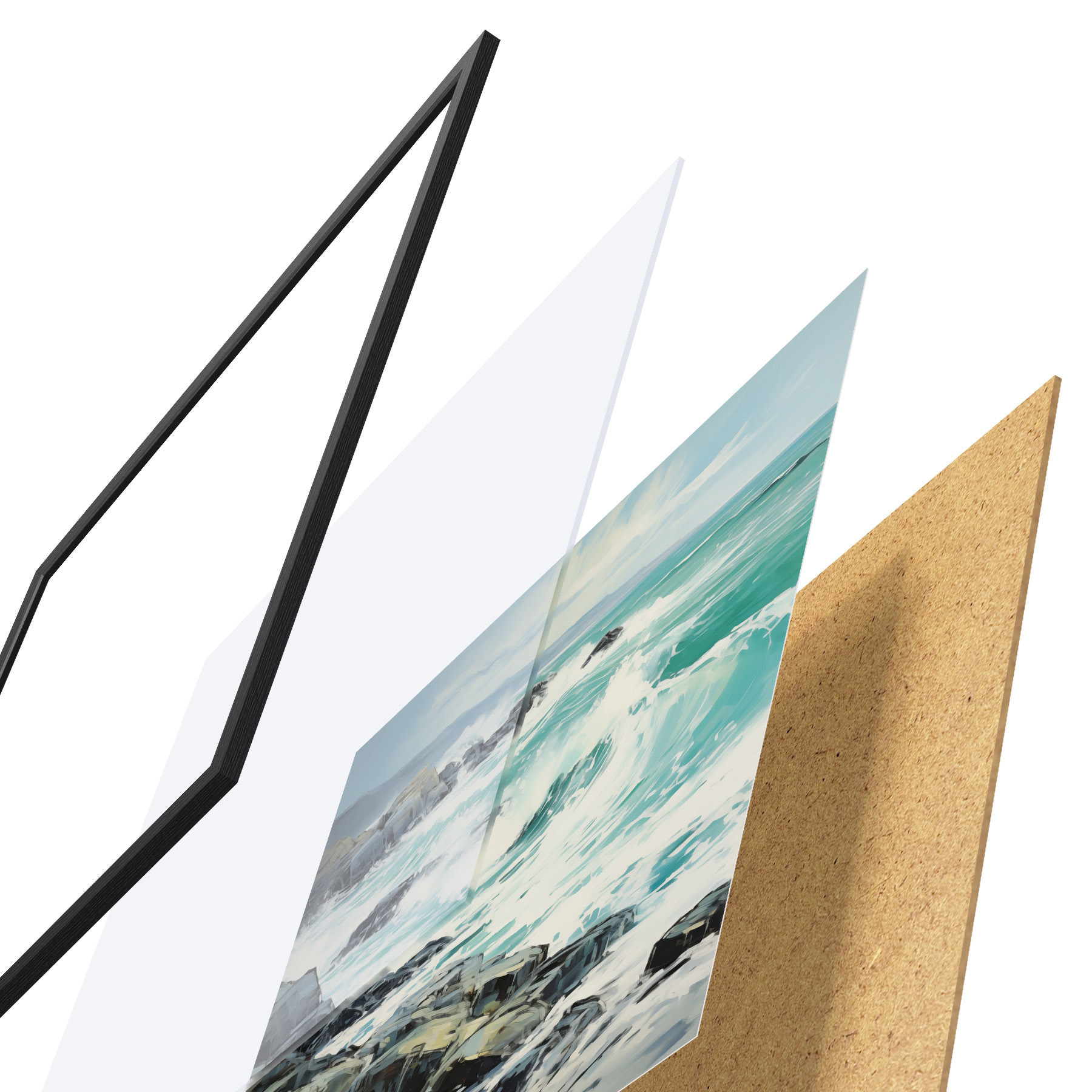 Il poster è composto da cornice, plexiglass, immagine stampata e supporto in truciolato. Il poster può essere immediatamente appeso alla parete grazie ai supporti sul retro.